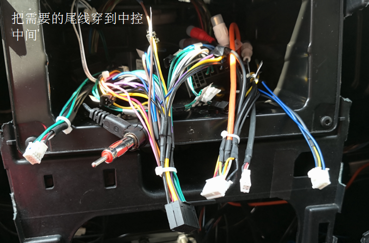 8、尾線插好后通電測(cè)試功能是否正常,功能正常后把主機(jī)固定到中控上用兩顆原車(chē)螺絲固定