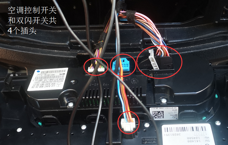 (5)把原車(chē)空調(diào)控制開(kāi)關(guān)線和雙閃開(kāi)關(guān)線插上