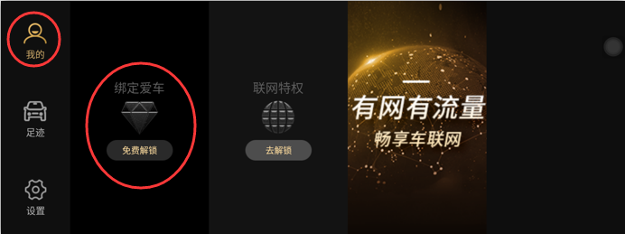3)任車(chē)行點(diǎn)開(kāi)后,左上角有個(gè)我的---點(diǎn)擊綁定愛(ài)車(chē)---免費(fèi)解鎖